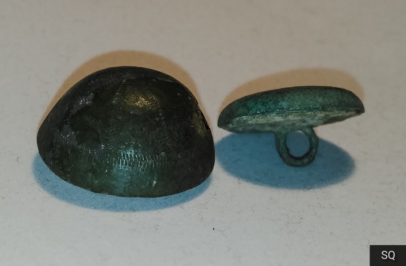 Те, что видел я, да - только 4 отверстия и нитяная ножка. 4 скобки вижу впервые. Откуда такая пуговица? В "Гардеробе" достаточно одежды послепетровского времени. Естественно с пуговицами. Да они все с одного места, просто за последние успел написать, что бы не чистили!!! |